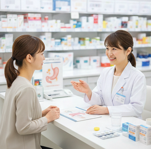 判断が難しい場合は、無理に自己判断せず、症状のタイミングや強さを薬剤師に伝えて相談してください。