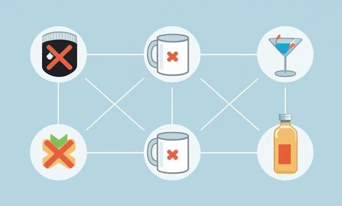 - コーヒーやエナジードリンクとの併用はカフェイン過剰や薬の吸収低下を招く可能性がある。